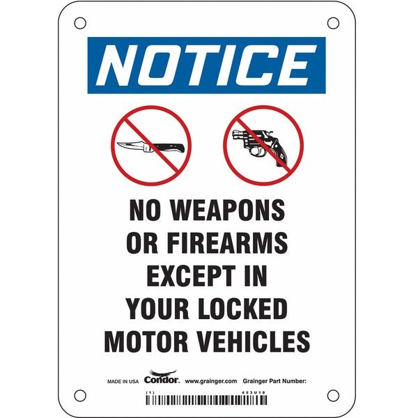 No Weapons Or Firearms Except In Your Locked Motor Vehicles