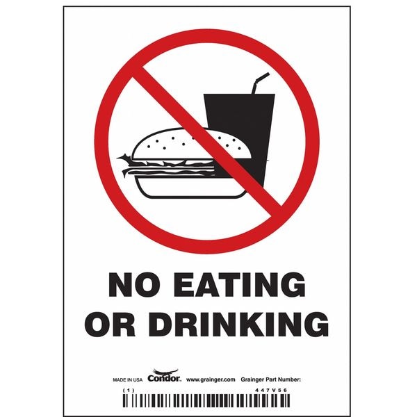 No Eating Or Drinking, Vinyl, 5 in x 3 1/2 in, Adhesive