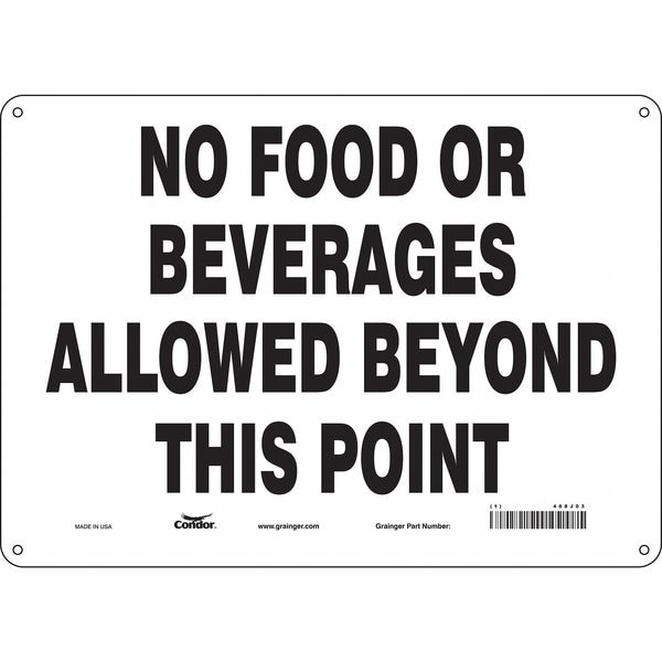 Safety Sign, Horizontal Rectangle, Number of Printed Sides 1, English, Sign Legend No Food Or Beverages Allowed Beyond This Point, Sign Legend Background Color White, Sign Legend Style Text