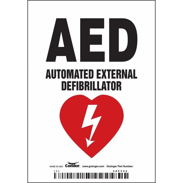 No Header, AED AUTOMATED EXTERNAL DEFIBRILLATOR, 3 1/2 in W x 5 in H, Vertical Rectangle, Vinyl