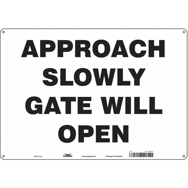 Safety Sign, Horizontal Rectangle, Number of Printed Sides 1, English, Sign Legend Approach Slowly Gate Will Open, Sign Legend Background Color White, Sign Legend Style Text