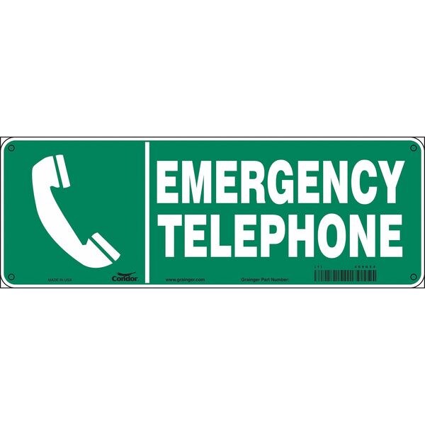 SAFETY SIGN FIRE AND EMERGENCY, Vertical Rectangle, Number of Printed Sides 1, English, Sign Format Other Format, Sign Legend Emergency Telephone, Sign Legend Background Color Green, Sign Legend Style Symbol and Text