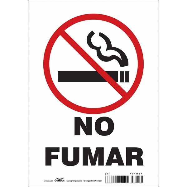Safety Sign, Horizontal Rectangle, Number of Printed Sides 1, Spanish, Sign Format Other Format, Sign Legend No Fumar, Sign Legend Background Color White, Sign Legend Style Symbol and Text