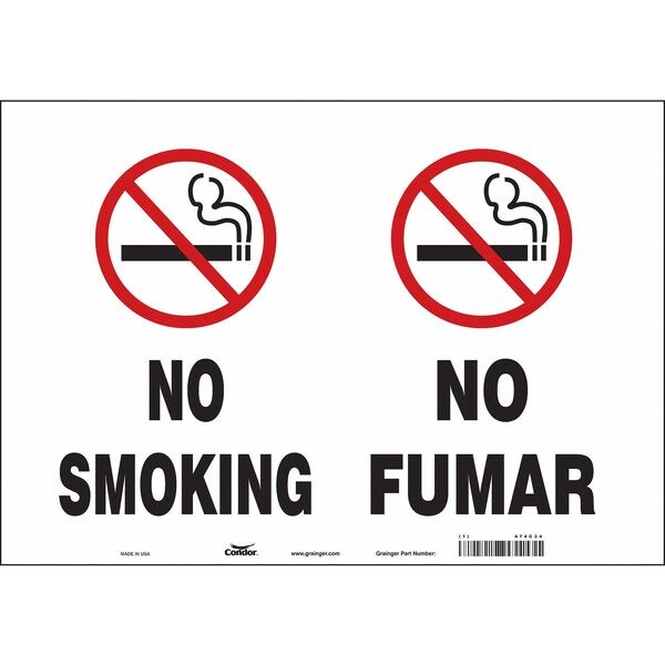 Safety Sign, Horizontal Rectangle, Number of Printed Sides 1, English, Spanish, Sign Format Other Format, Sign Legend No Smoking/No Fumar, Sign Legend Background Color White, Sign Legend Style Symbol and Text