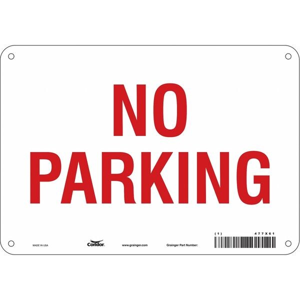 No Parking Sign, Height 7 in, Width 10 in, Sign Material Aluminum, Sign Mounting Style Mounting Holes, Printed Language English, Sign Shape Horizontal Rectangle