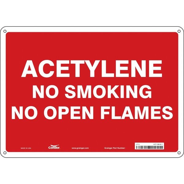 No Smoking Sign, Horizontal Rectangle, Number of Printed Sides 1, English, Sign Format Other Format, Sign Legend Acetylene No Smoking No Open Flames, Sign Legend Background Color Red, White, Sign Legend Style Text