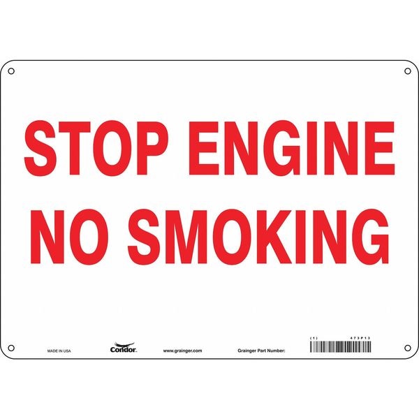 No Smoking Sign, Horizontal Rectangle, Number of Printed Sides 1, English, Sign Format Other Format, Sign Legend Stop Engine No Smoking, Sign Legend Background Color White, Sign Legend Style Text