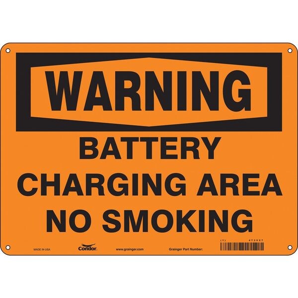 No Smoking Sign, Horizontal Rectangle, Number of Printed Sides 1, English, Sign Format Traditional OSHA, Sign Legend Battery Charging Area No Smoking, Sign Legend Background Color Orange, Sign Legend Style Text