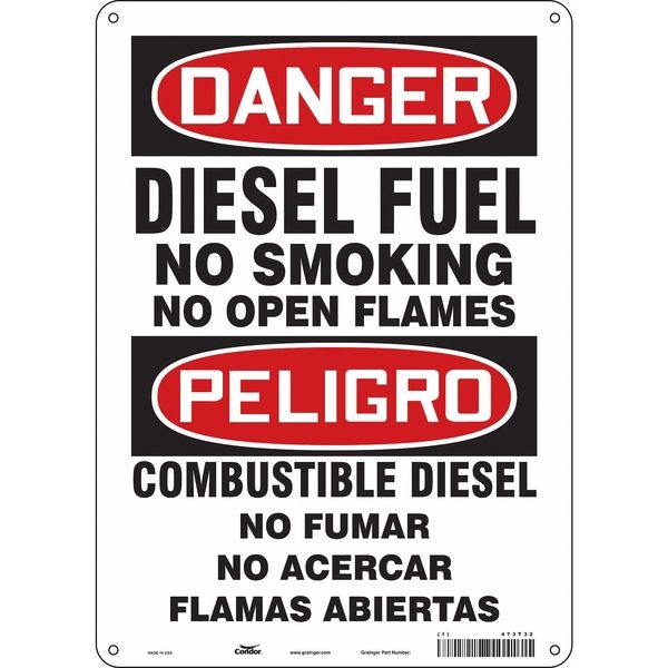 No Smoking Sign, Vertical Rectangle, Number of Printed Sides 1, English, Spanish, Sign Format Traditional OSHA, Sign Legend Diesel Fuel No Smoking No Open Flames/Combustible No Fumar No Encender Flamas, Sign Legend Background Color White, Sign Legend Style Text