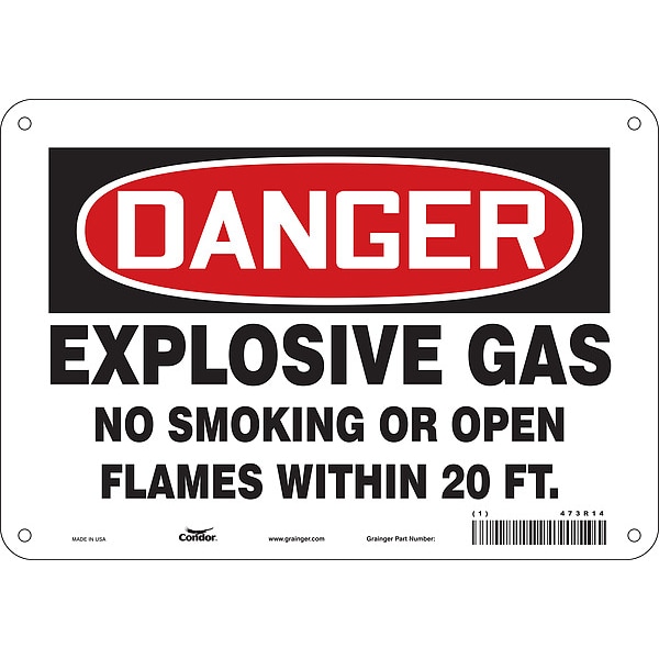 No Smoking Sign, Vertical Rectangle, Number of Printed Sides 1, English, Sign Format Traditional OSHA, Sign Legend Explosive Gas No Smoking Or Open Flames Within 20 Ft., Sign Legend Background Color White, Sign Legend Style Text