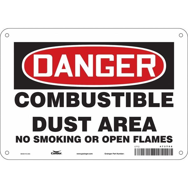 No Smoking Sign, Vertical Rectangle, Number of Printed Sides 1, English, Sign Format Traditional OSHA, Sign Legend Combustible Dust Area No Smoking Or Open Flames, Sign Legend Background Color White, Sign Legend Style Text