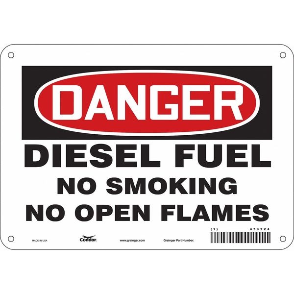 No Smoking Sign, Vertical Rectangle, Number of Printed Sides 1, English, Sign Format Traditional OSHA, Sign Legend Diesel Fuel No Smoking No Open Flames, Sign Legend Background Color White, Sign Legend Style Text
