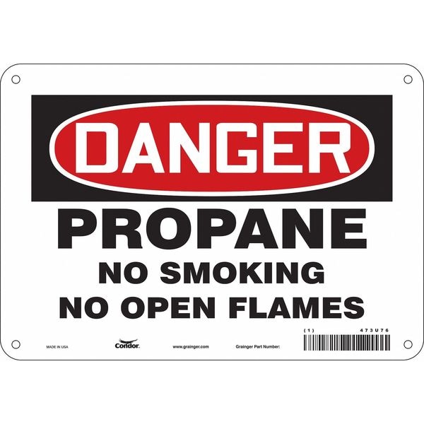 No Smoking Sign, Vertical Rectangle, Number of Printed Sides 1, English, Sign Format Traditional OSHA, Sign Legend Propane No Smoking No Open Flames, Sign Legend Background Color White, Sign Legend Style Text