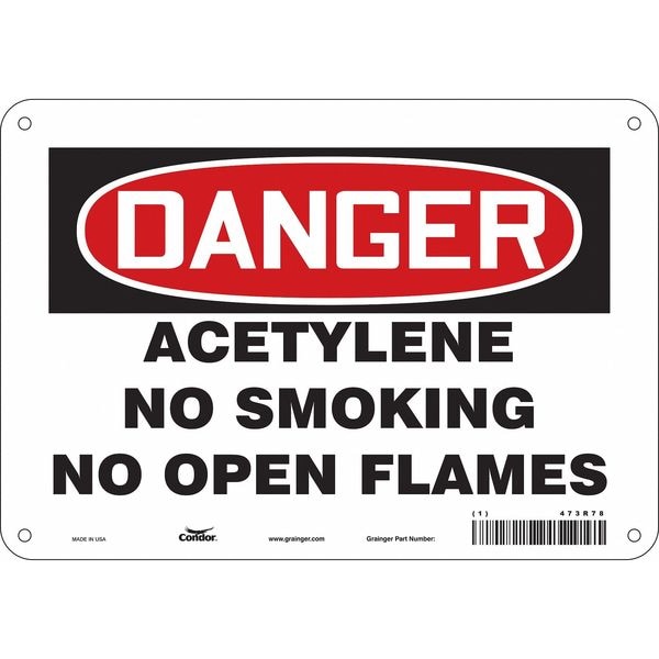 No Smoking Sign, Vertical Rectangle, Number of Printed Sides 1, English, Sign Format Traditional OSHA, Sign Legend Acetylene No Smoking No Open Flames, Sign Legend Background Color White, Sign Legend Style Text