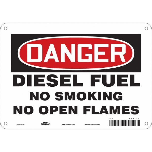 No Smoking Sign, Vertical Rectangle, Number of Printed Sides 1, English, Sign Format Traditional OSHA, Sign Legend Diesel Fuel No Smoking No Open Flames, Sign Legend Background Color White, Sign Legend Style Text