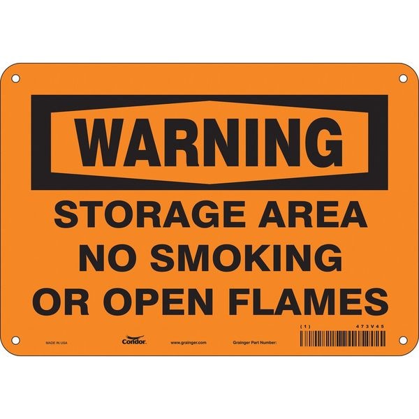 No Smoking Sign, Vertical Rectangle, Number of Printed Sides 1, English, Sign Format Traditional OSHA, Sign Legend Storage Area No Smoking Or Open Flames, Sign Legend Background Color Orange, Sign Legend Style Text