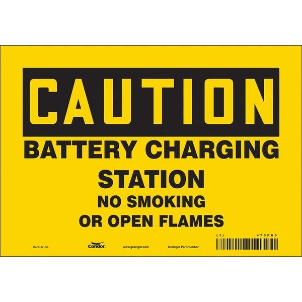 No Smoking Sign, Vertical Rectangle, Number of Printed Sides 1, English, Sign Format Traditional OSHA, Sign Legend Battery Charging Station No Smoking Or Open Flames, Sign Legend Background Color Yellow, Sign Legend Style Text