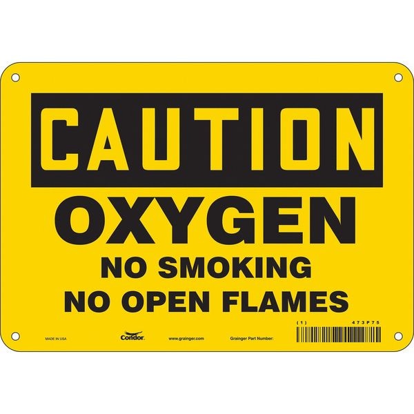 No Smoking Sign, Vertical Rectangle, Number of Printed Sides 1, English, Sign Format Traditional OSHA, Sign Legend Oxygen No Smoking No Open Flames, Sign Legend Background Color Yellow, Sign Legend Style Text