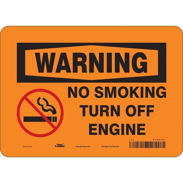 No Smoking Sign, Vertical Rectangle, Number of Printed Sides 1, English, Sign Format Traditional OSHA, Sign Legend No Smoking Turn Off Engine, Sign Legend Background Color Orange, Sign Legend Style Symbol and Text