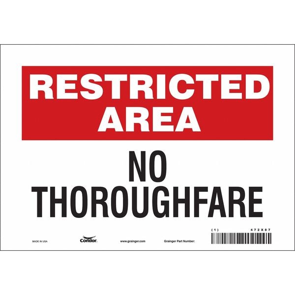 Safety Sign, Vertical Rectangle, Number of Printed Sides 1, English, Sign Format Other Format, Sign Legend No Thoroughfare, Sign Legend Background Color Red, White, Sign Legend Style Text