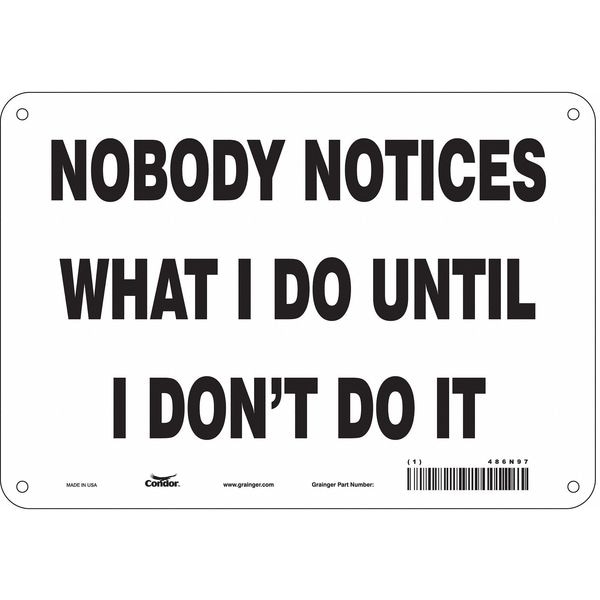 Safety Sign, Vertical Rectangle, Number of Printed Sides 1, English, Sign Format Other Format, Sign Legend Nobody Notices What I Do Until I Don'T Do It, Sign Legend Background Color White, Sign Legend Style Text