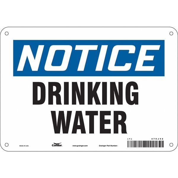 Notice, Drinking Water, 10 in W x 7 in H, Vertical Rectangle, Aluminum, 470J52