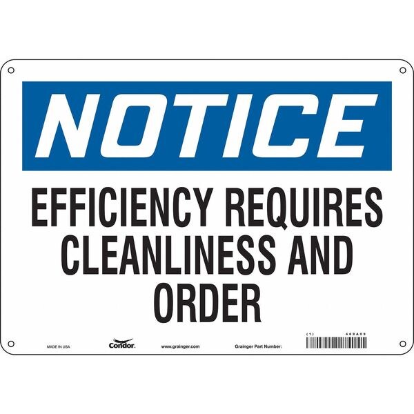 Notice, EFFICIENCY REQUIRES CLEANLINESS AND ORDER, 14 in W x 10 in H, Horizontal Rectangle, 469A09