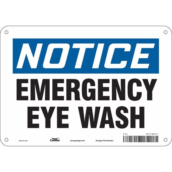 Notice, Emergency Eye Wash, 10 in W x 7 in H, Vertical Rectangle, Aluminum, 471A71