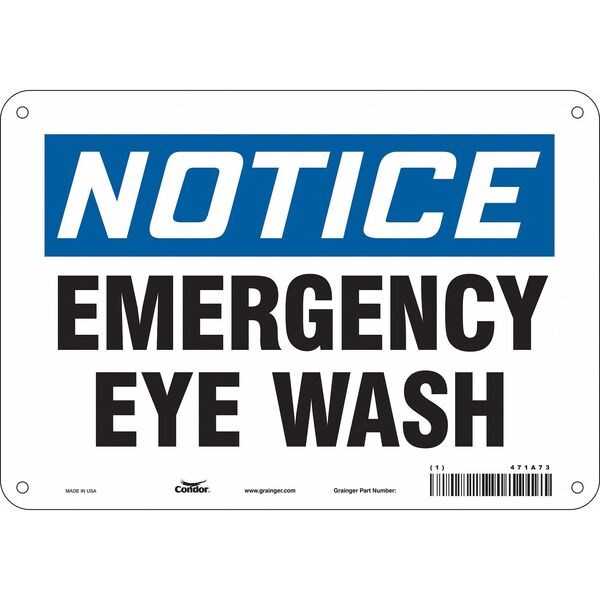 Notice, Emergency Eye Wash, 10 in W x 7 in H, Vertical Rectangle, Polyethylene, 471A73