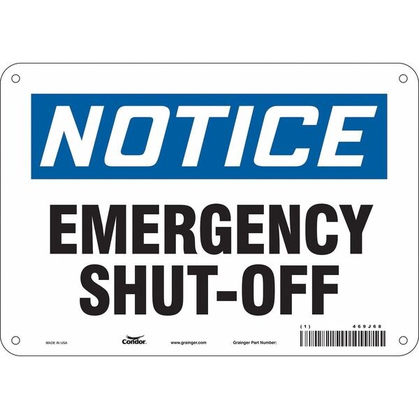 Notice, EMERGENCY SHUT-OFF, 10 in W x 7 in H, Vertical Rectangle, Polyethylene, 469J68