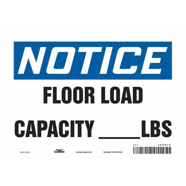 Notice, FLOOR LOAD CAPACITY _ LBS, 10 in W x 7 in H, Vertical Rectangle, Vinyl, 485K16
