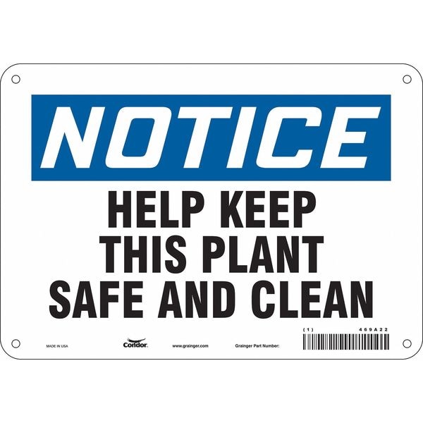 Notice, HELP KEEP THIS PLANT SAFE AND CLEAN, 10 in x 7 in, Vertical Rectangle, Polyethylene, 469A22