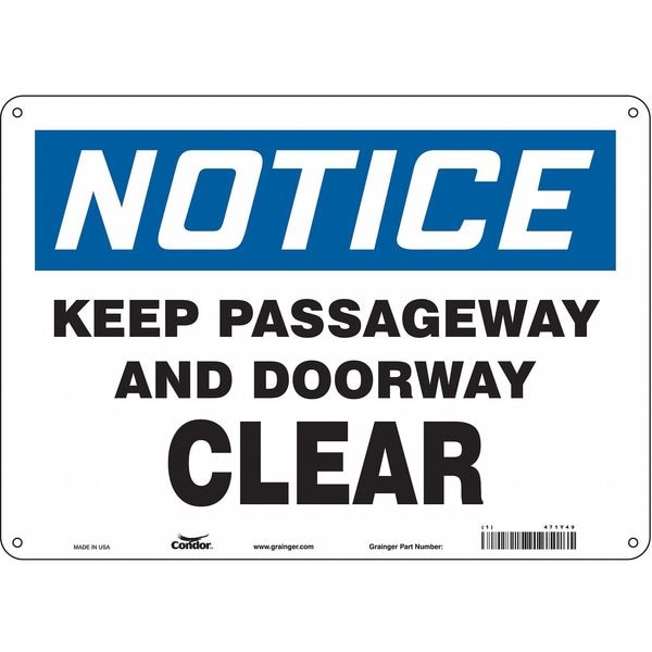 Notice, Keep Passageway And Doorway Clear, 14 in W x 10 in H, , Polyethylene, 471Y49