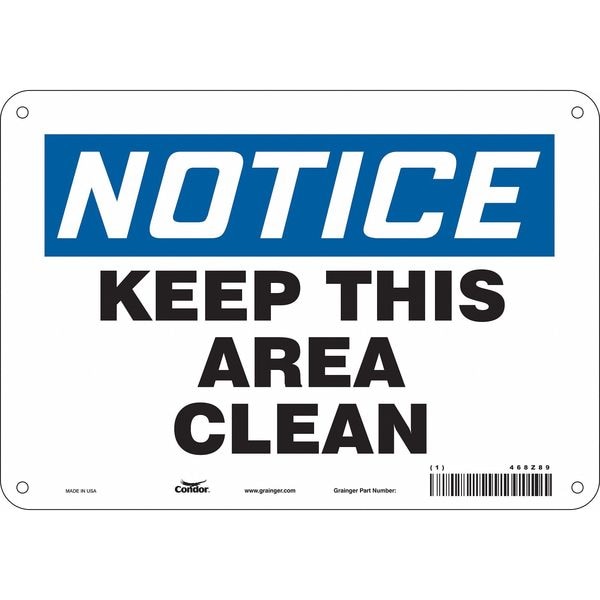 Notice, KEEP THIS AREA CLEAN, 10 in W x 7 in H, Vertical Rectangle, Aluminum, 468Z89