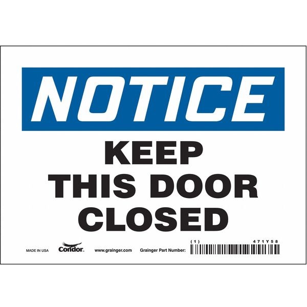 Notice, Keep This Door Closed, 7 in W x 5 in H, Horizontal Rectangle, Vinyl, 471Y58