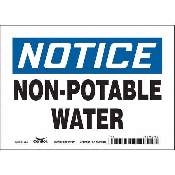 Notice, Non-Potable Water, 7 in W x 5 in H, Horizontal Rectangle, Vinyl, 470J82