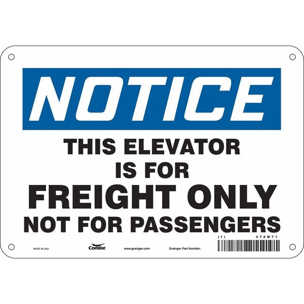 Notice, THIS ELEVATOR IS FOR FREIGHT ONLY NOT FOR PASSENGERS, 10 in W x 7 in H, Polyethylene, 479M71