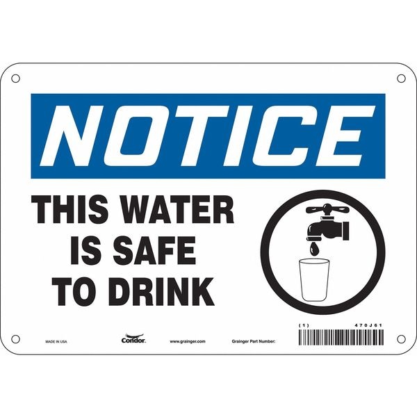 Notice, This Water Is Safe To Drink, 10 in W x 7 in H, Vertical Rectangle, Polyethylene, 470J61