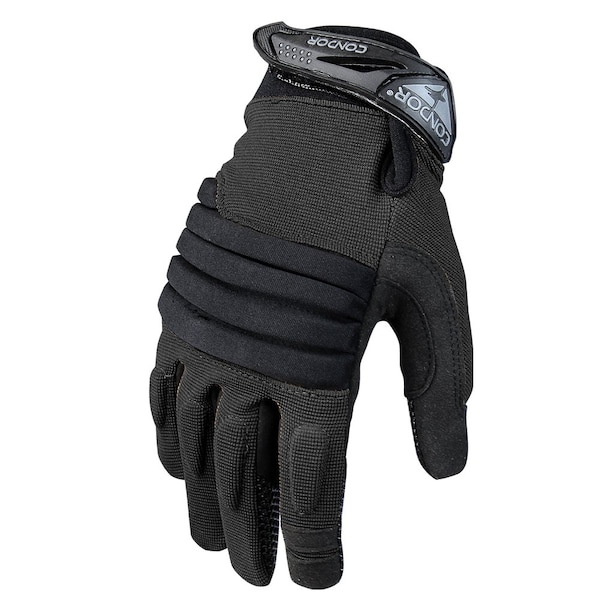 Synthetic leather palm with reinforced and padding Twoway stretch spandex backhand for flexibility and breathability Molded rubber cuff adjuster Silicone antislip finger tips to maximize grip Terry cloth sweat wipe on thumb Imported Size 8 S ,9 M ,10 L ,11 XL ,12 XXL