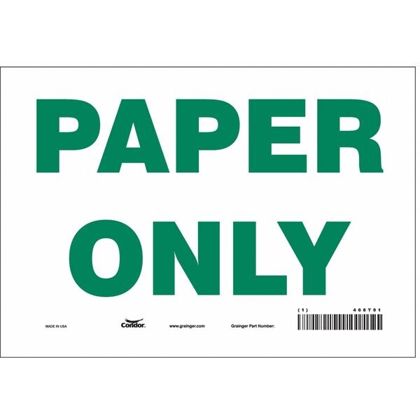 Safety Sign, Vertical Rectangle, Number of Printed Sides 1, English, Sign Format Other Format, Sign Legend Paper Only, Sign Legend Background Color White, Sign Legend Style Text