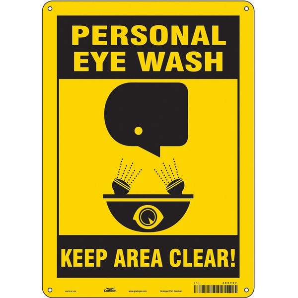 PERSONAL EYE WASH KEEP AREA CLEAR!, 10 in W x 14 in H, Vertical Rectangle, Polyethylene, 485Y07