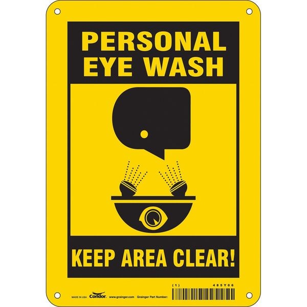 PERSONAL EYE WASH KEEP AREA CLEAR!, 7 in W x 10 in H, Horizontal Rectangle, Polyethylene, 485Y06