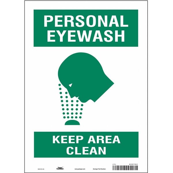 PERSONAL EYEWASH KEEP AREA CLEAN, 10 in W x 14 in H, Vertical Rectangle, Vinyl, 485Y02