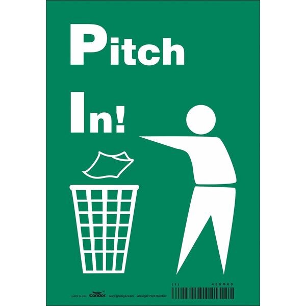Safety Sign, Horizontal Rectangle, Number of Printed Sides 1, English, Sign Format Other Format, Sign Legend Pitch In!, Sign Legend Background Color Green, Sign Legend Style Symbol and Text