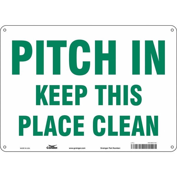 Safety Sign, Horizontal Rectangle, Number of Printed Sides 1, English, Sign Format Other Format, Sign Legend Pitch In Keep This Place Clean, Sign Legend Background Color White, Sign Legend Style Text
