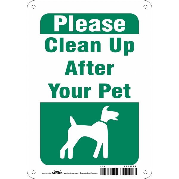 PLEASE CLEAN UP AFTER YOUR PET, 7 in W x 10 in H, Horizontal Rectangle, Polyethylene, 485M22