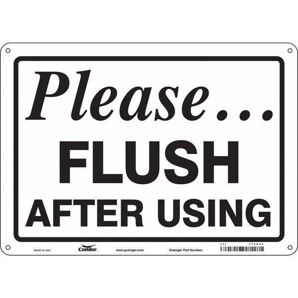 PLEASE FLUSH AFTER USING, 14 in W x 10 in H, Horizontal Rectangle, Aluminum, 474A36