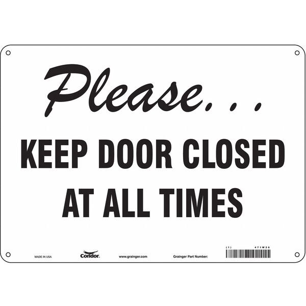 Please Keep Door Closed At All Times, 14 in W x 10 in H, Horizontal Rectangle, Polyethylene, 471W26