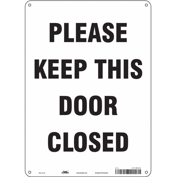 Please Keep This Door Closed, 10 in W x 14 in H, Vertical Rectangle, Aluminum, 471W30