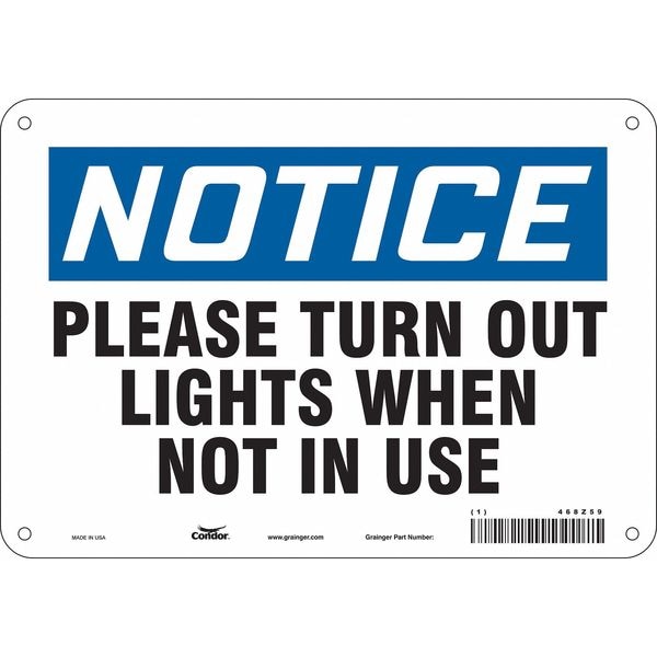 PLEASE TURN OUT LIGHTS WHEN NOT IN USE, 10 in W x 7 in H, Vertical Rectangle, Polyethylene, 468Z59